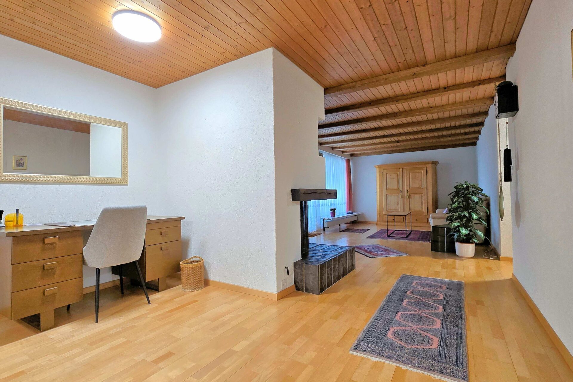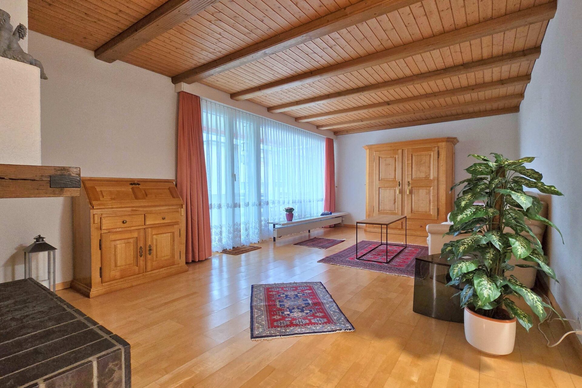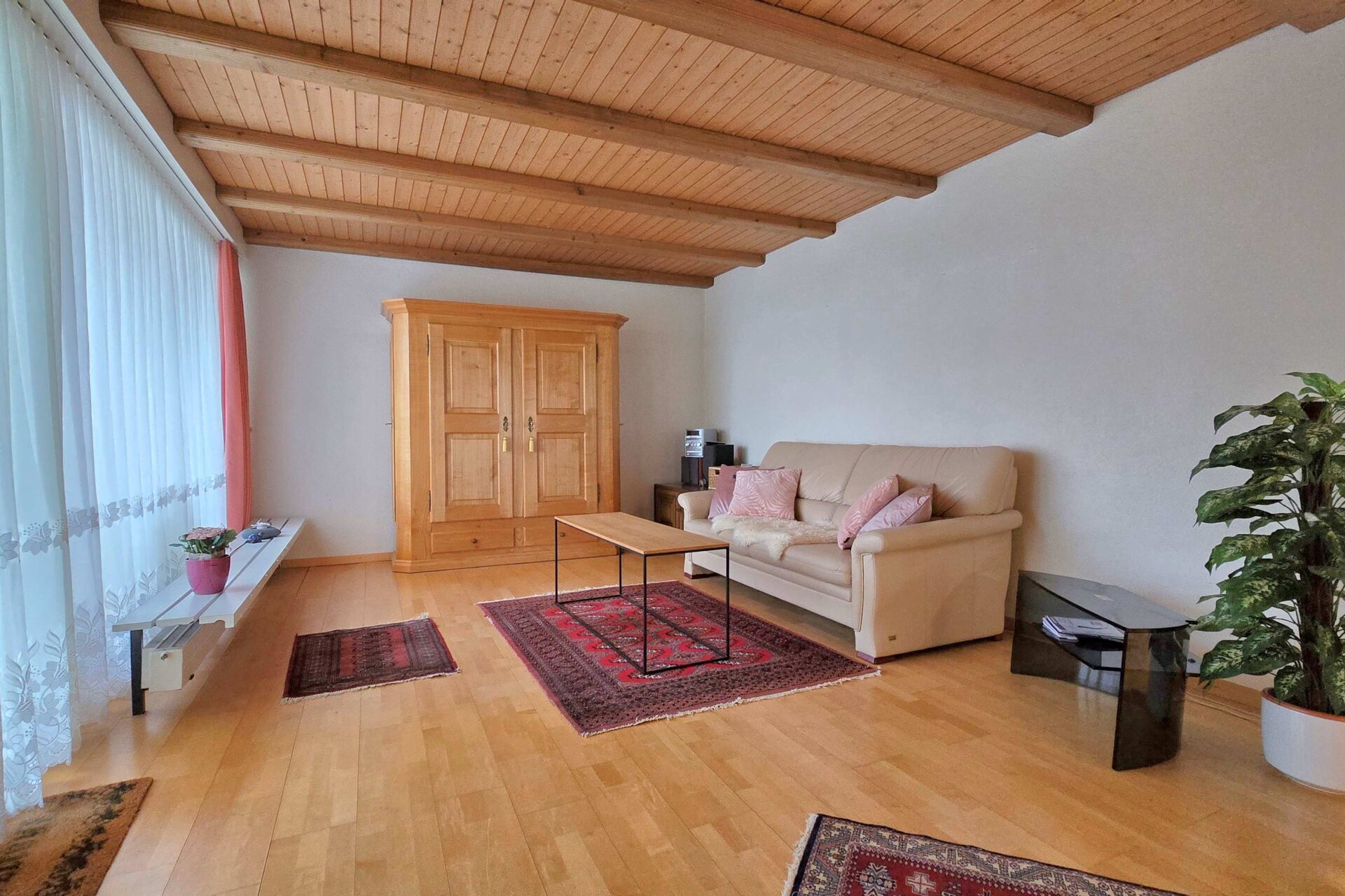 Weitere Merkmale: praktische Wohnküche, mehrheitlich Parkett und Plattenbeläge, Badezimmer mit Tageslicht, Gäste-WC, Cheminée, elektrische Rollläden, schöne Holzdecke im Wohnbereich, Einbauschränke, teilverglaster Balkon etc.