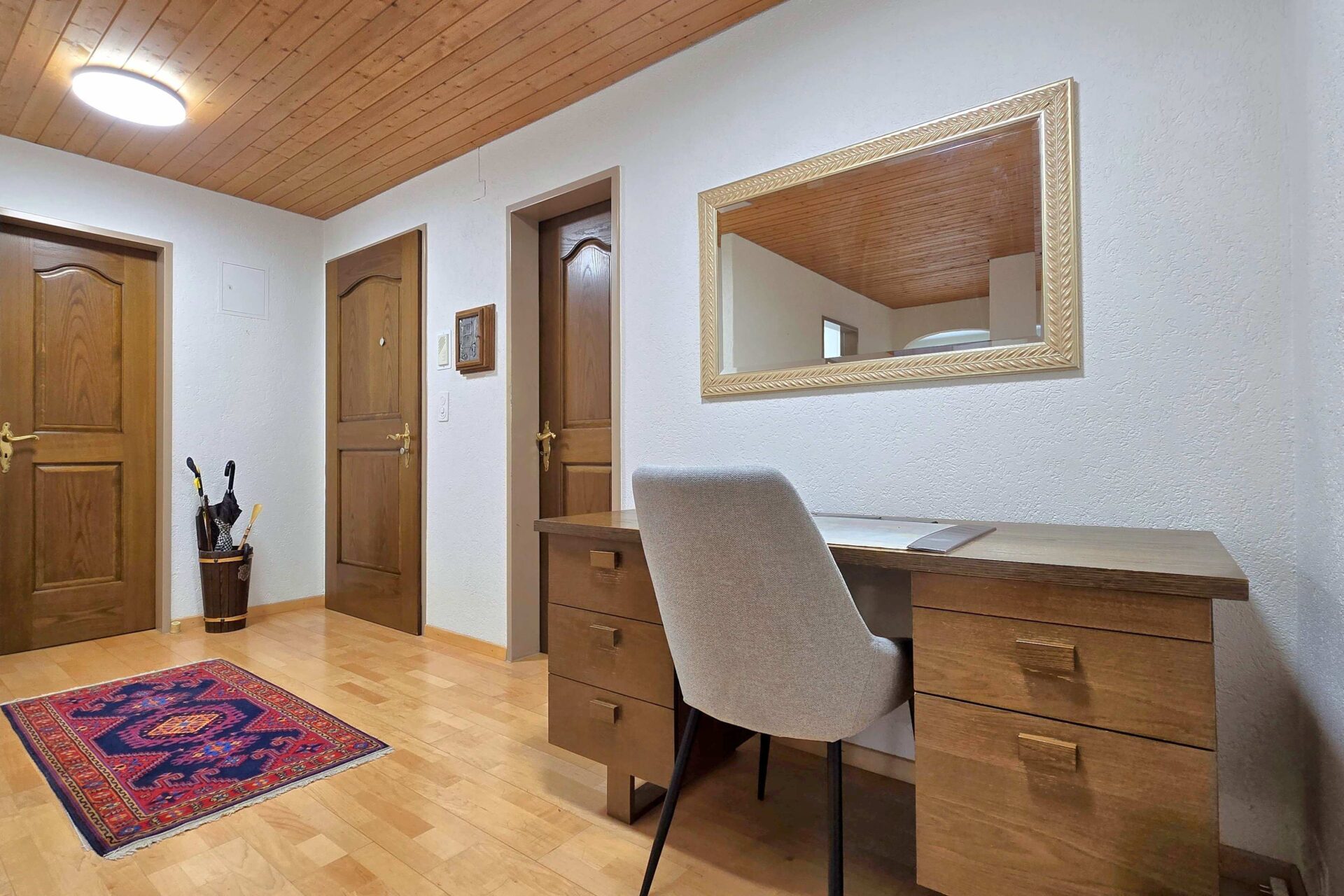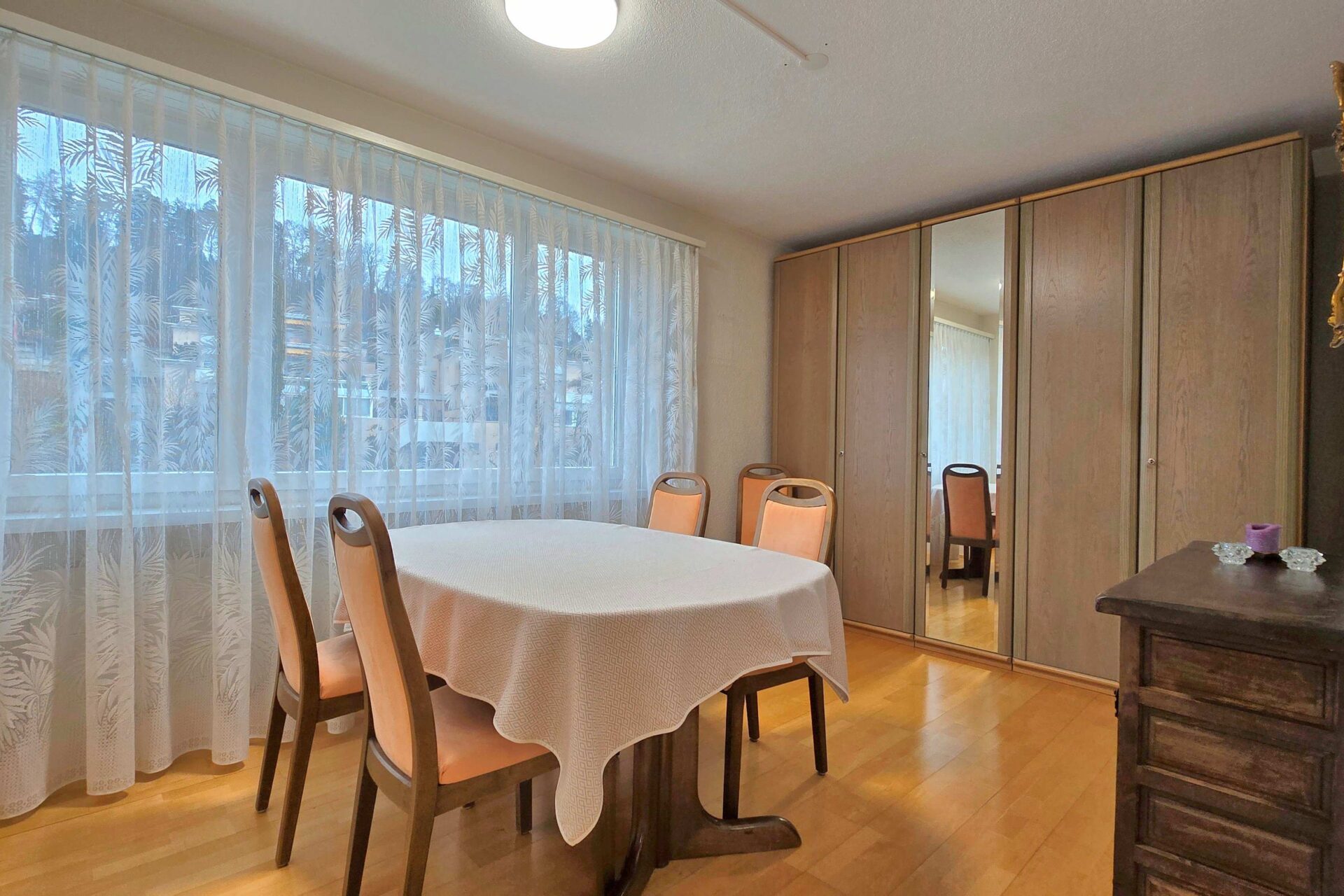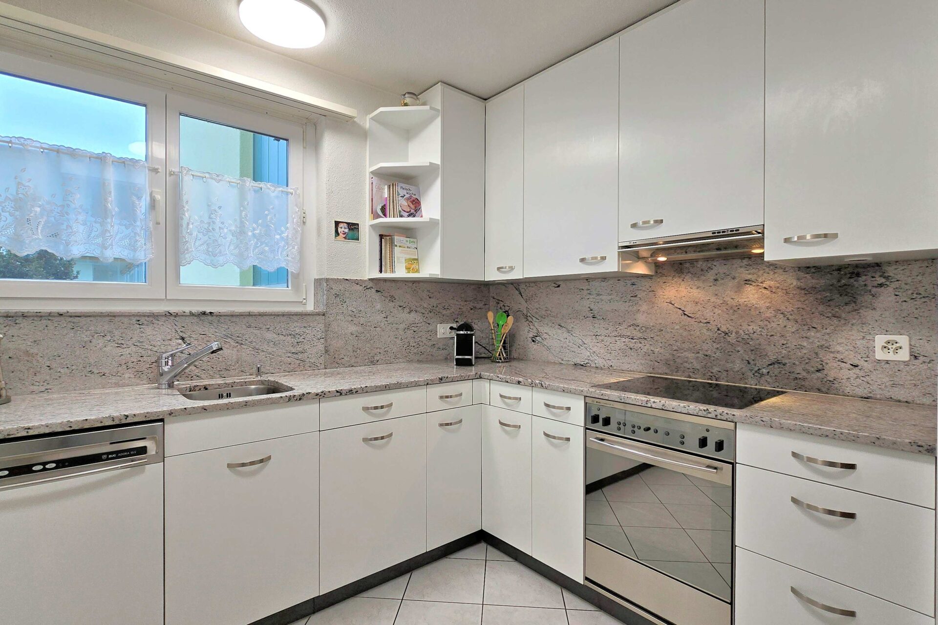 Weitere Merkmale: praktische Wohnküche, mehrheitlich Parkett und Plattenbeläge, Badezimmer mit Tageslicht, Gäste-WC, Cheminée, elektrische Rollläden, schöne Holzdecke im Wohnbereich, Einbauschränke, teilverglaster Balkon etc.